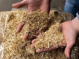100% aus Weizenstroh aus der direkten Umgebung des Herstellwerkes. Ganz